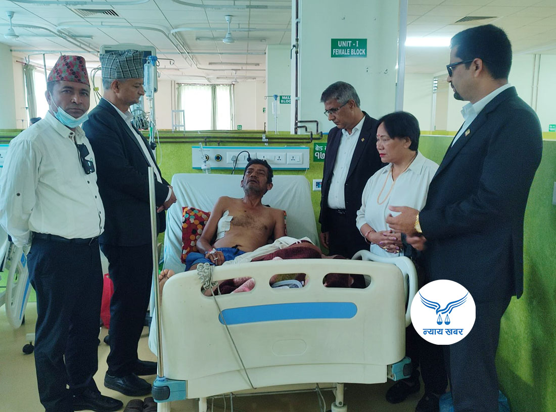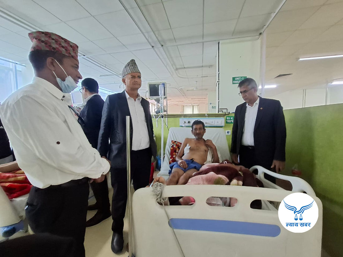 घाइतेहरुको अवस्था बुझ्न नेपाल बार एशोसिएशनका पदाधिकारी वीर अस्पताल पुगेका छन्। बारका अध्यक्ष प्रा.डा वरिष्ठ अधिवक्ता विजयप्रसाद मिश्र, महासचिव वरिष्ठ अधिवक्ता केदारप्रसाद कोइराला, उपाध्यक्ष अधिवक्ता सरस्वती श्रेष्ठ, सदस्य अधिवक्ता दमनबहादुर चन्द, सदस्य अधिवक्ता शारदा गुरुङ सहित बार पदाधिकारी र कानून व्यवसायीहरुले घाइतेहरुको स्वास्थ्य अवस्था बुझी अस्पताल निर्देशकलाइ प्राथमिकतामा राखी उपचार गर्न अनुरोध गरेका छन्।