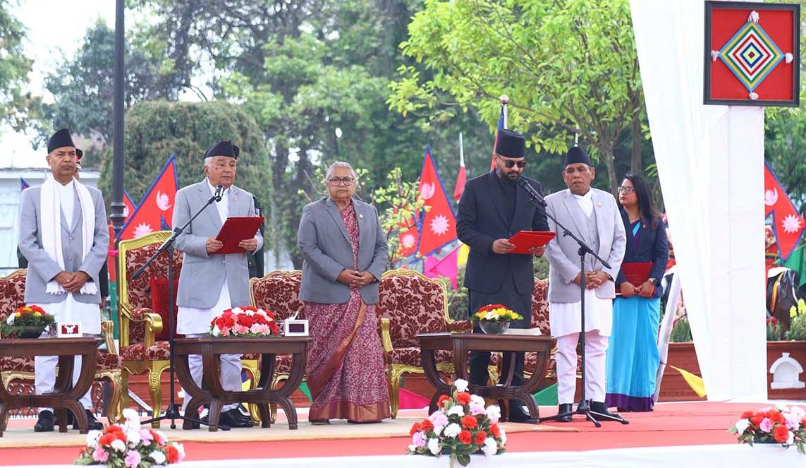 १३ चैत्र, काठमाडौं। राष्ट्रपति रामचन्द्र पौडेलले नवनियुक्त प्रधानमन्त्री बालेन्द्र शाहलाइ पद तथा गोपनीयताको शपथ गराएका छन्।