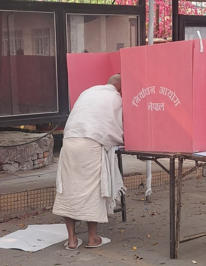 चैत्र २३, काठमाडौं। नेपाल बार एसोसिएसनको २७ औँ केन्द्रीय कार्यसमितिको निर्वाचनमा पृतिशोक परेका अधिवक्ता देविराम उपाध्यायले ११ औं दिनमा सर्वोच्च अदालत परिसरमा उपस्थित भएर मतदान गरेका छन्।